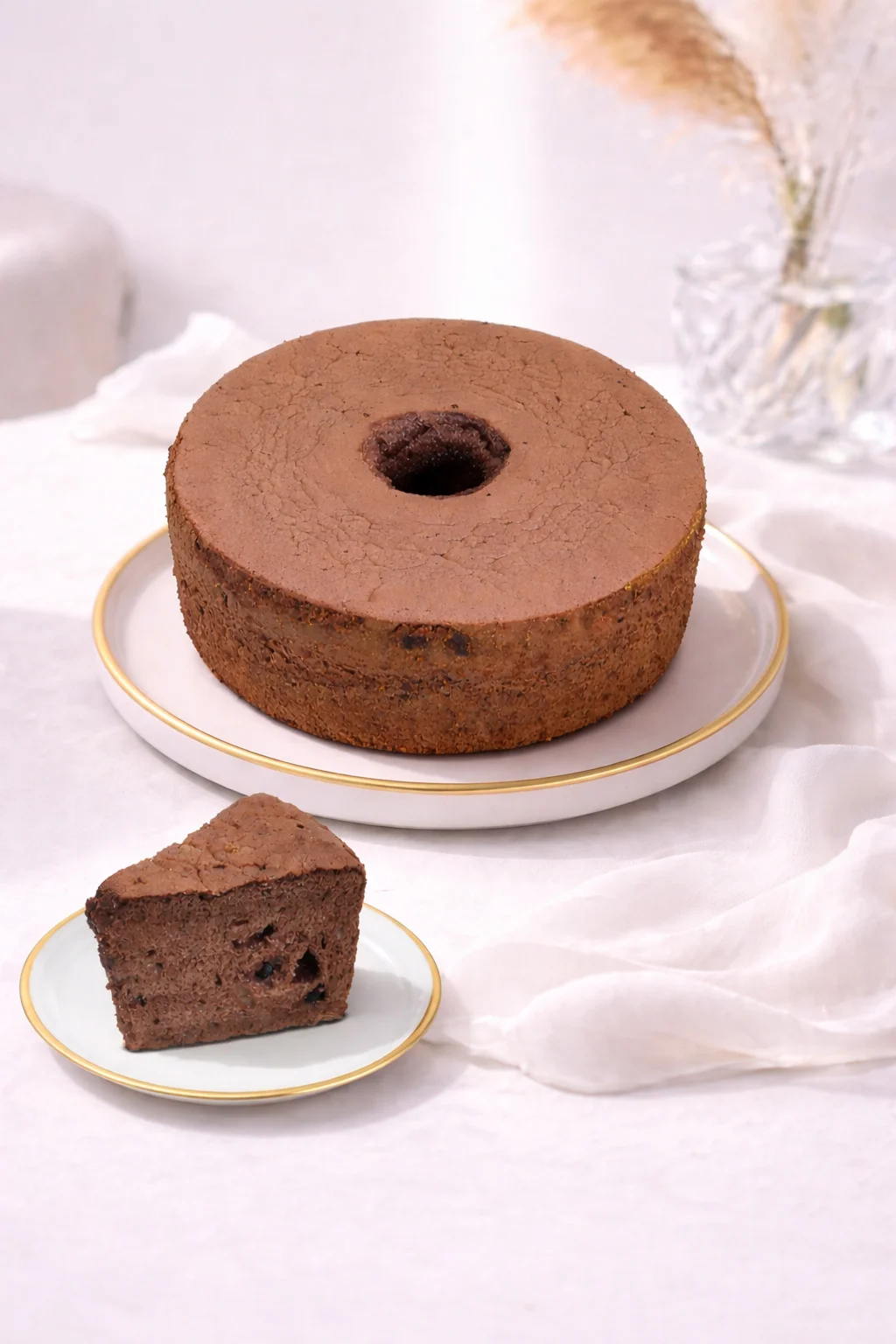Cake chiffon coklat premium yang lembut dengan choco chip di dalamnya