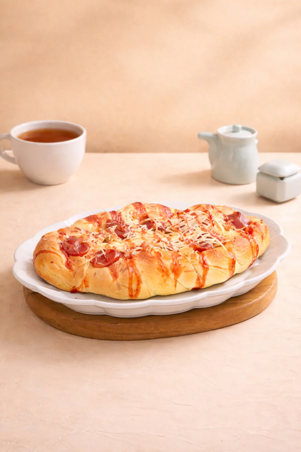 Roti dengan potongan sosis dan taburan keju